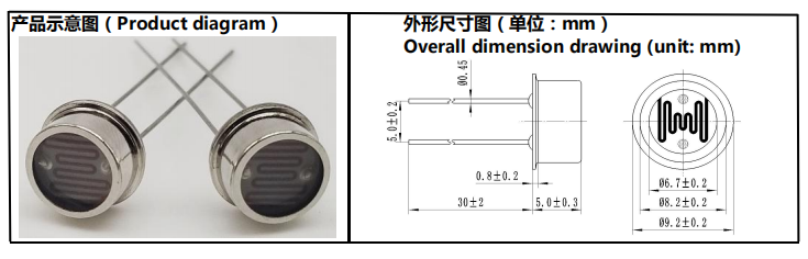 7mm金属壳光敏电阻圆芯