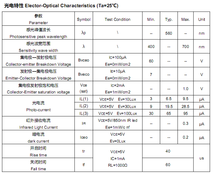 光敏传感器HL504HP