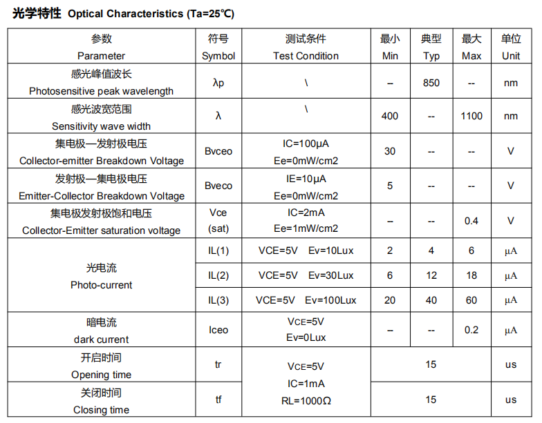 光敏传感器HLPTSMD021